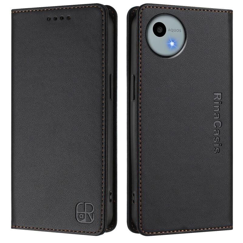 For Sharp Aquos Wish4 SH-52E RC01 Dual-Folded Magnetic Suction RFID Leather Phone Case(Black)