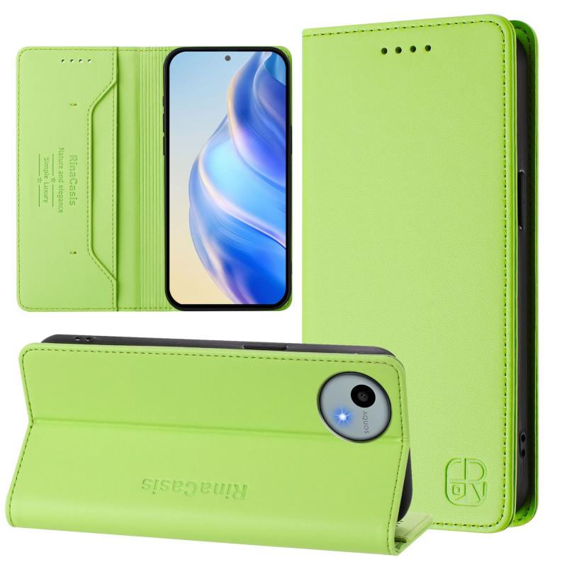 For Sharp Aquos Wish4 SH-52E RC01 Dual-Folded Magnetic Suction RFID Leather Phone Case(Grass Green)