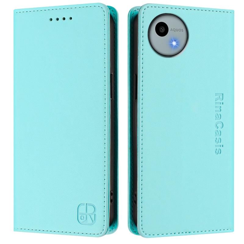 For Sharp Aquos Wish4 SH-52E RC01 Dual-Folded Magnetic Suction RFID Leather Phone Case(Mint Green)