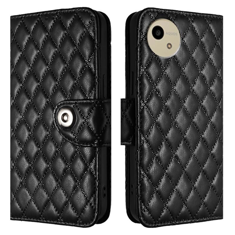 Για το Sharp Aquos Wish4 SH-52E Rhombic Texture Flip δερμάτινη θήκη τηλεφώνου με κορδόνι (μαύρο)