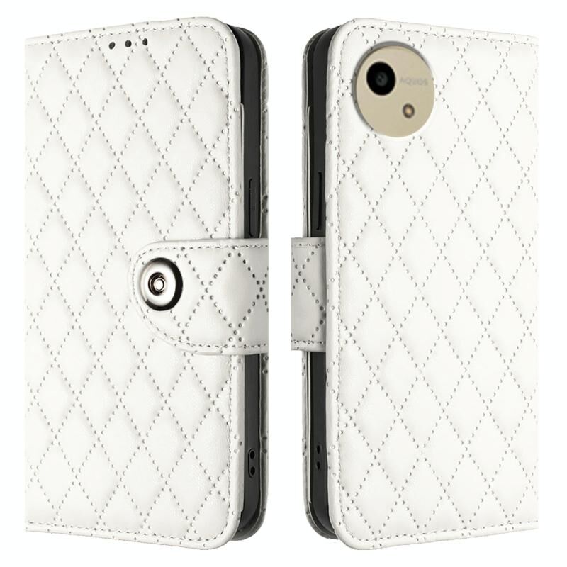 Για το Sharp Aquos Wish4 SH-52E Rhombic Texture Flip δερμάτινη θήκη τηλεφώνου με κορδόνι (λευκό)