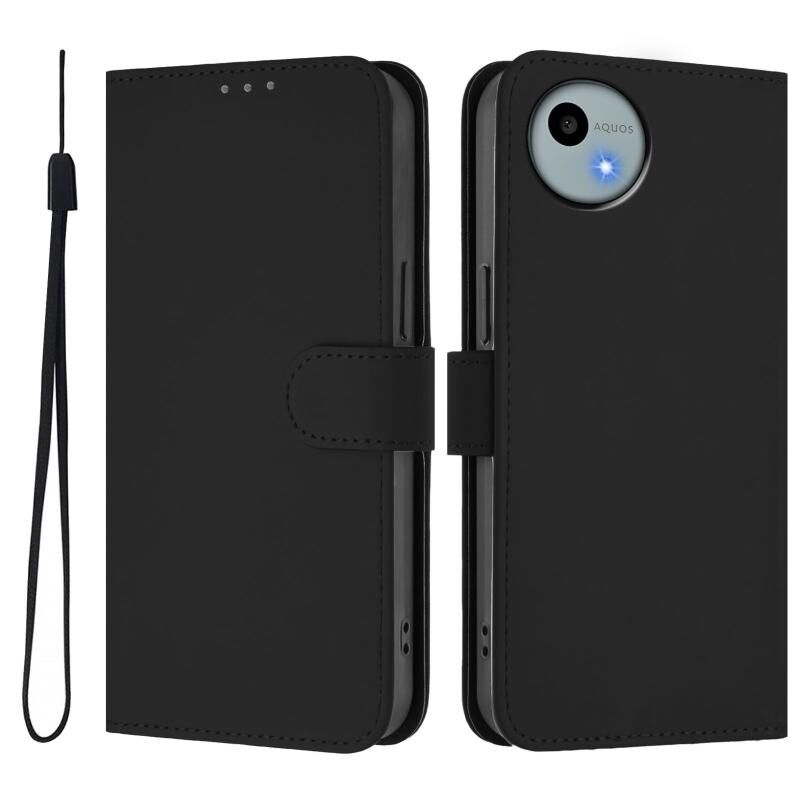 For Sharp Aquos Wish4/SH-52E Skin Feel Solid Color Leather Phone Case with Lanyard(Black)