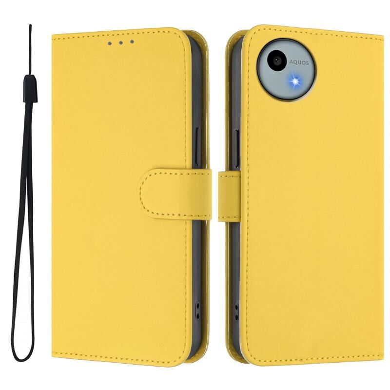 For Sharp Aquos Wish4/SH-52E Skin Feel Solid Color Leather Phone Case with Lanyard(Lemon Yellow)