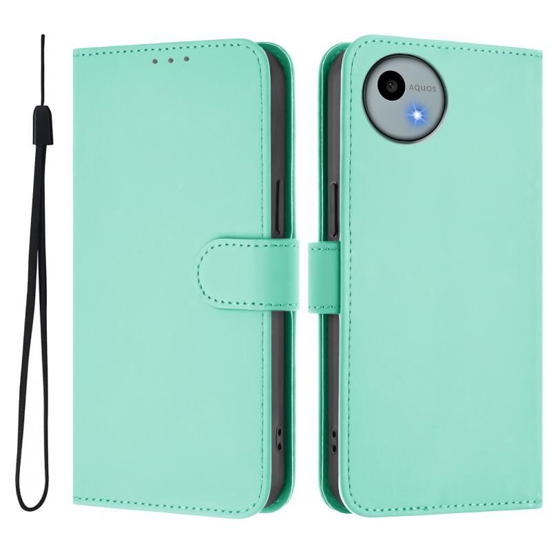 For Sharp Aquos Wish4/SH-52E Skin Feel Solid Color Leather Phone Case with Lanyard(Mint Green)