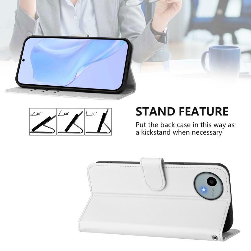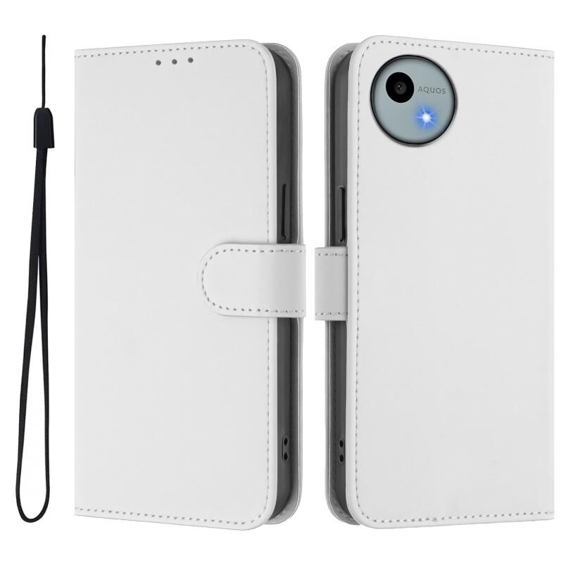 For Sharp Aquos Wish4/SH-52E Skin Feel Solid Color Leather Phone Case with Lanyard(White)