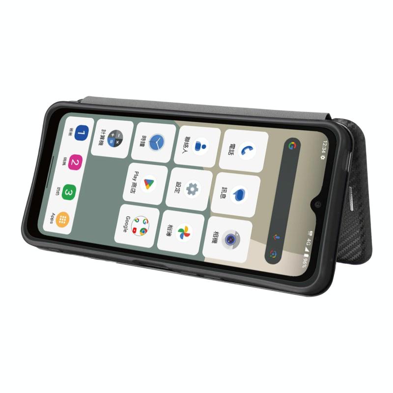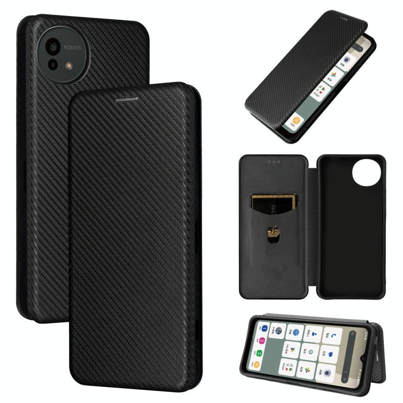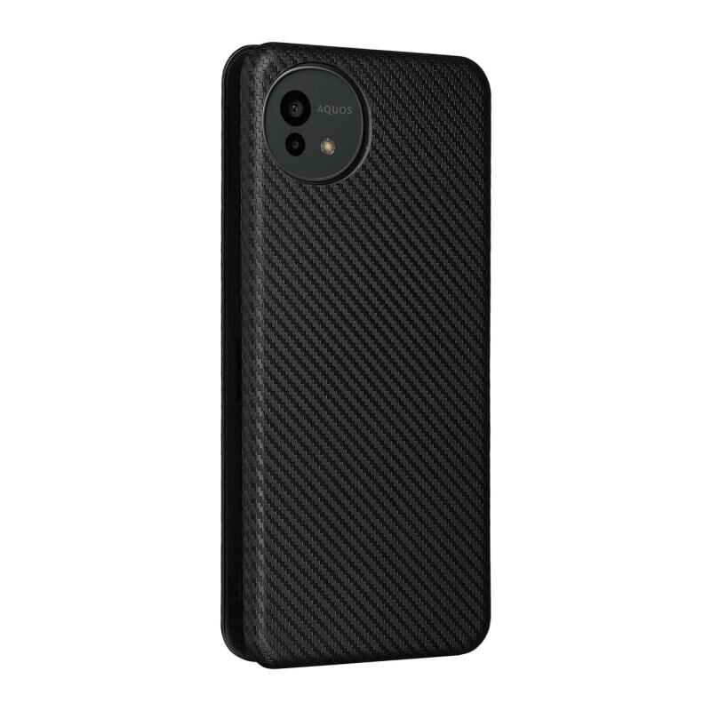 Θήκη τηλεφώνου από δέρμα με υφή ανθρακονημάτων για Sharp Aquos wish5 (Μαύρο)