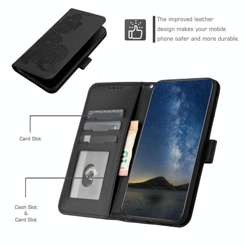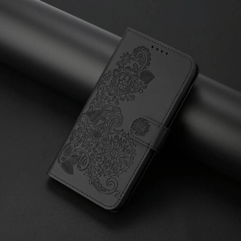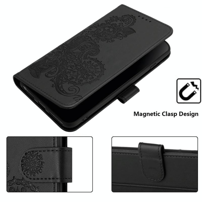 For Sharp Aquos wish5 Datura Flower Embossed Flip Leather Phone Case(Black)