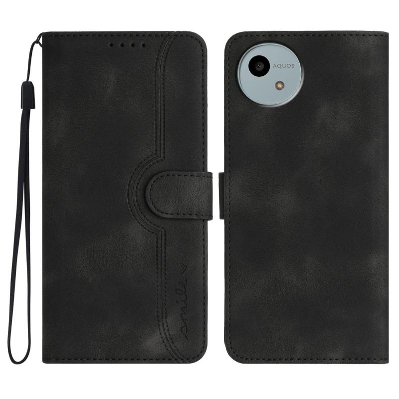 For Sharp Aquos wish5 Heart Pattern Skin Feel Leather Phone Case(Black)