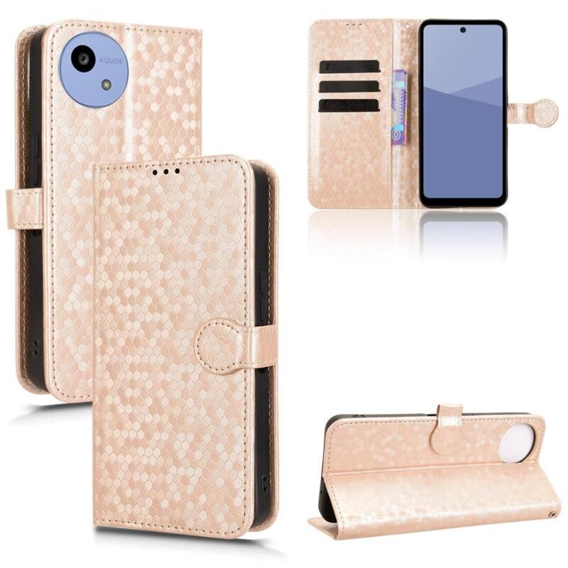 For Sharp Aquos wish5 Honeycomb Dot Texture Leather Phone Case(Gold)