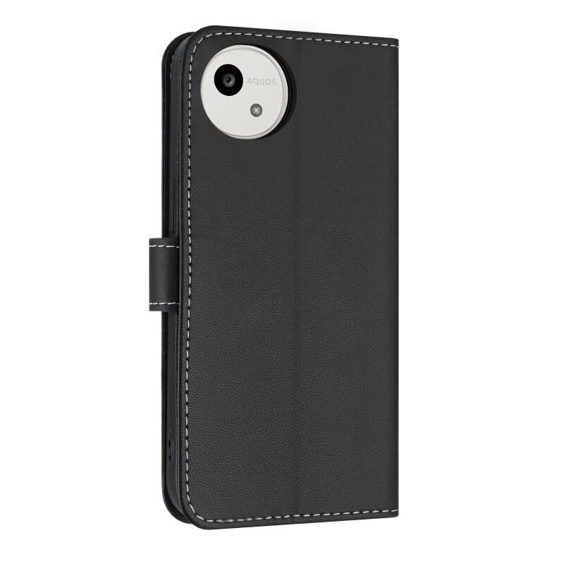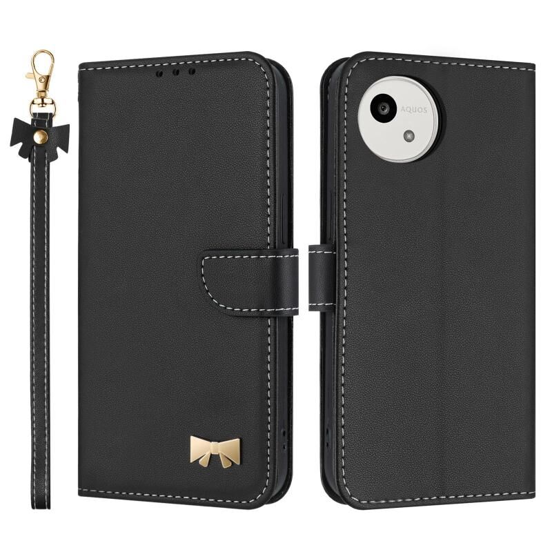 For Sharp Aquos wish5 Metal Bow Leather Phone Case with Hand Strap(Black)