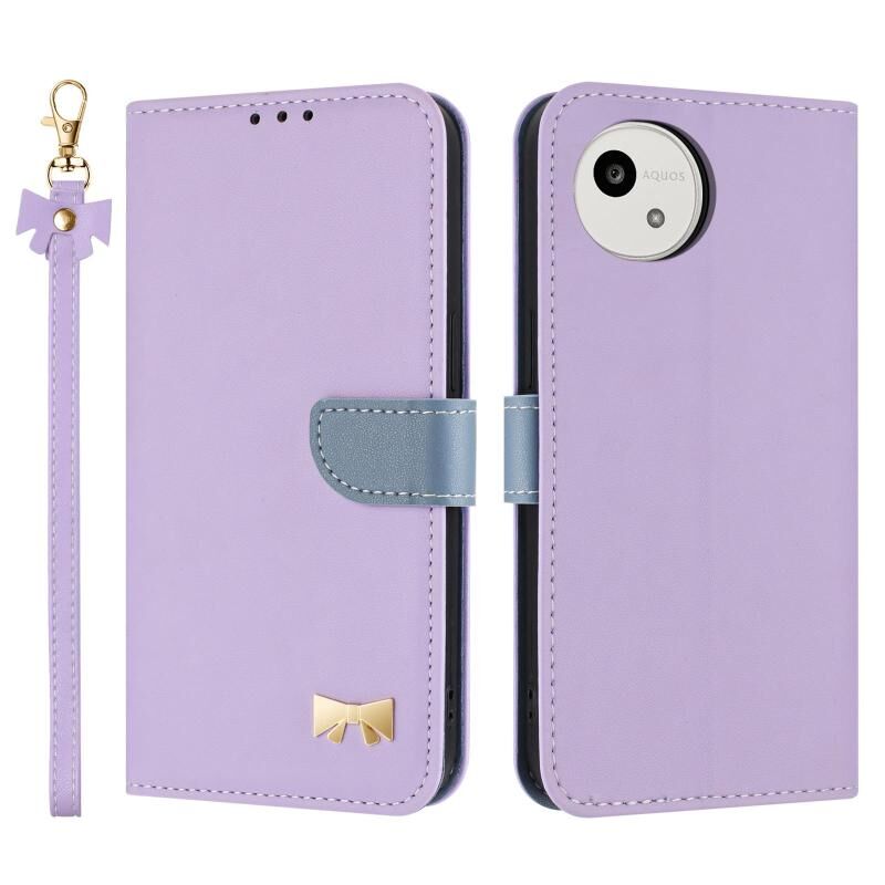 For Sharp Aquos wish5 Metal Bow Leather Phone Case with Hand Strap(Purple)