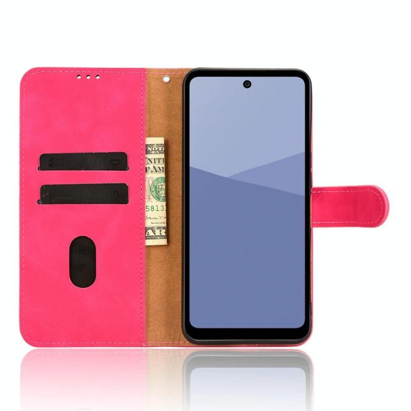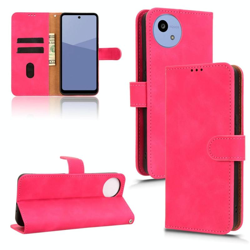 Θήκη τηλεφώνου από δέρμα με μαγνητικό κλείσιμο και αίσθηση αφής για Sharp Aquos wish5 (Ροζέ κόκκινο)