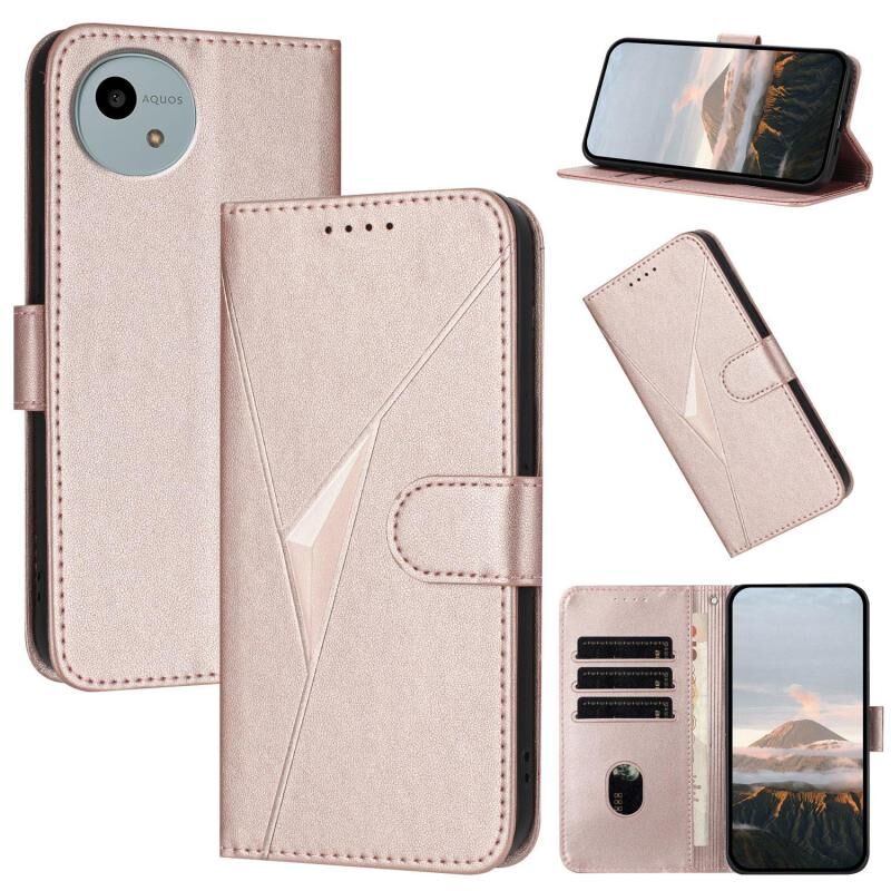 For Sharp Aquos wish5 Triangle Pattern Buckle Clasp Leather Phone Case(Rose Gold)