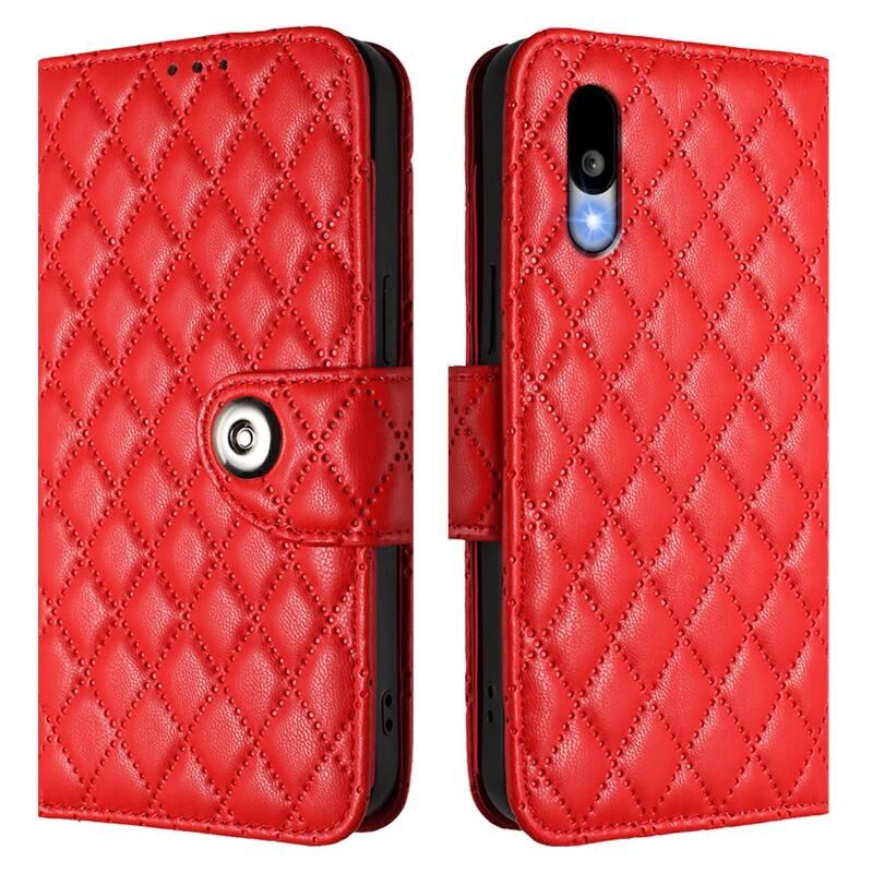 Θήκη τηλεφώνου από δέρμα με ανάγλυφη υφή ρόμβου για Sharp Basio Active 3, με λουρί (Κόκκινο)