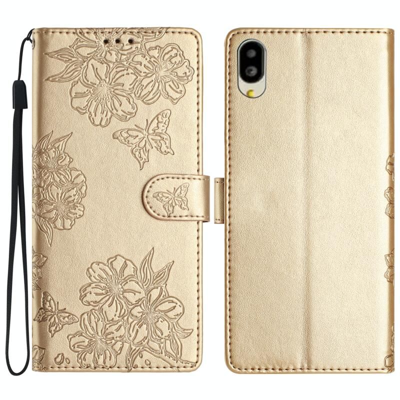 Θήκη τηλεφώνου Sharp Basio active SHG09 Cherry Blossom Butterfly Skin Feel Embossed PU (Μωβ)