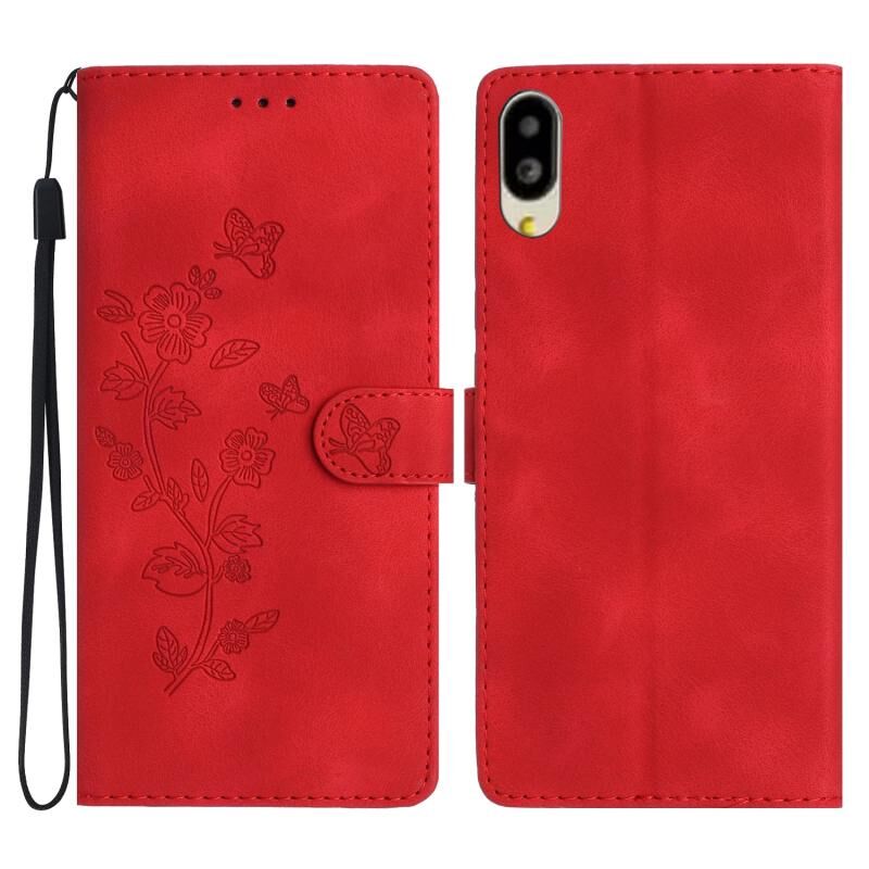 Για Sharp Basio ενεργό SHG09 λουλούδι πεταλούδα ανάγλυφο μοτίβο δερμάτινη θήκη τηλεφώνου (κόκκινο)