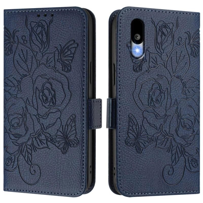 For Sharp Basio Active3 Embossed Rose RFID Anti-theft Leather Phone Case(Dark Blue)