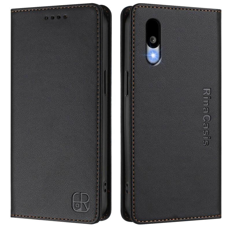 For Sharp Basio Active3 RC01 Dual-Folded Magnetic Suction RFID Leather Phone Case(Black)