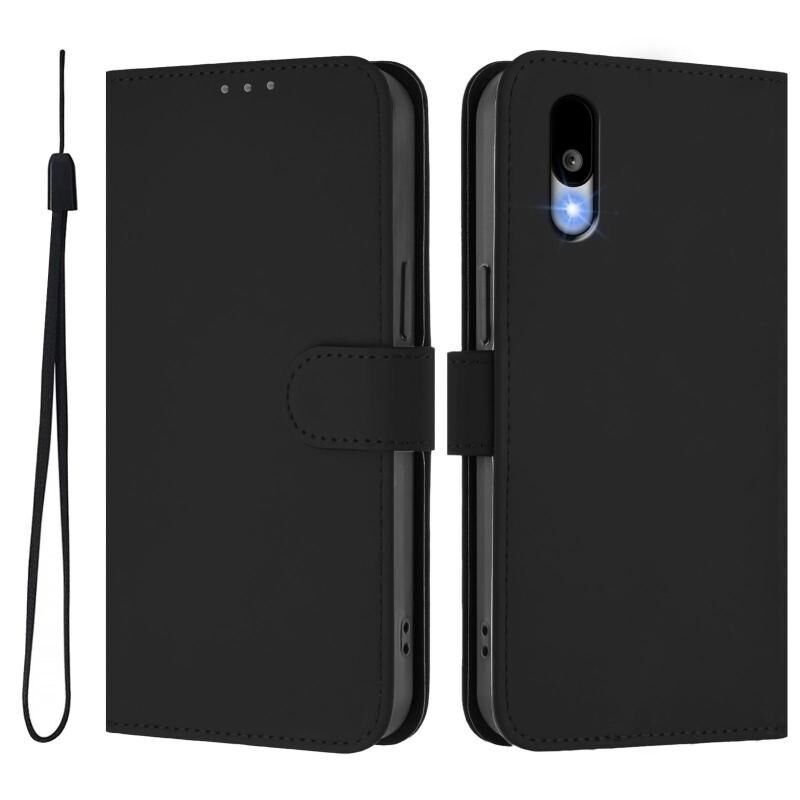 For Sharp Basio Active3 Skin Feel Solid Color Leather Phone Case with Lanyard(Black)