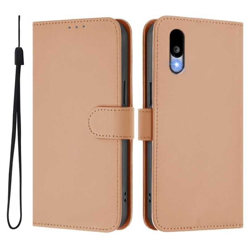 For Sharp Basio Active3 Skin Feel Solid Color Leather Phone Case with Lanyard(Nude)