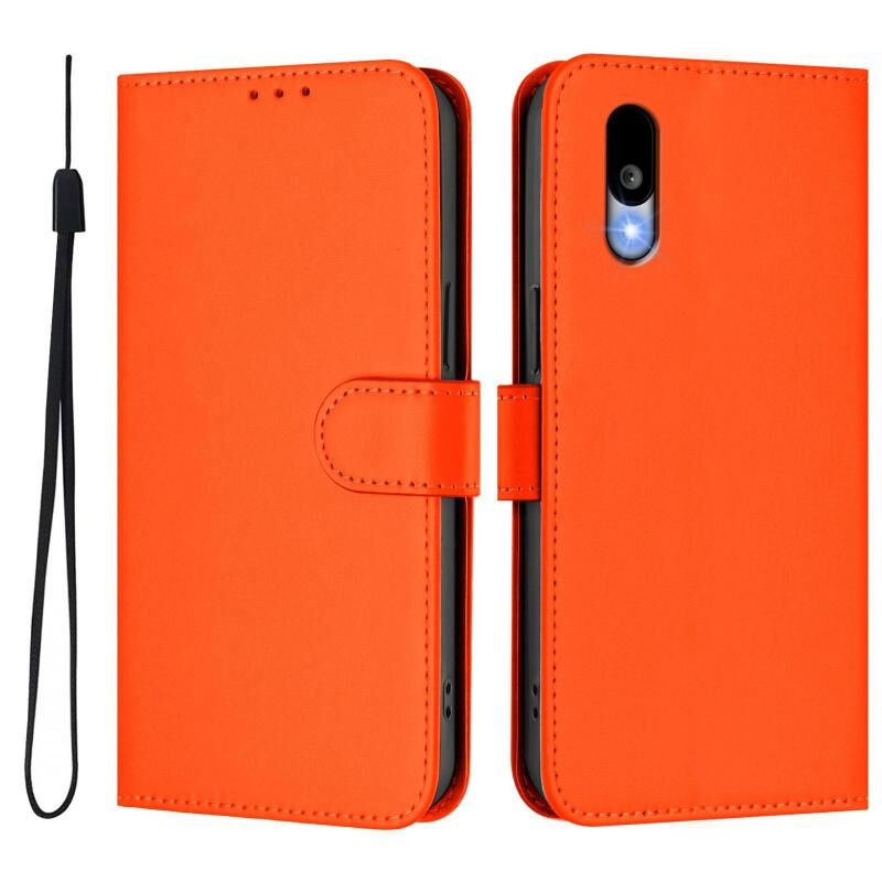 For Sharp Basio Active3 Skin Feel Solid Color Leather Phone Case with Lanyard(Orange)