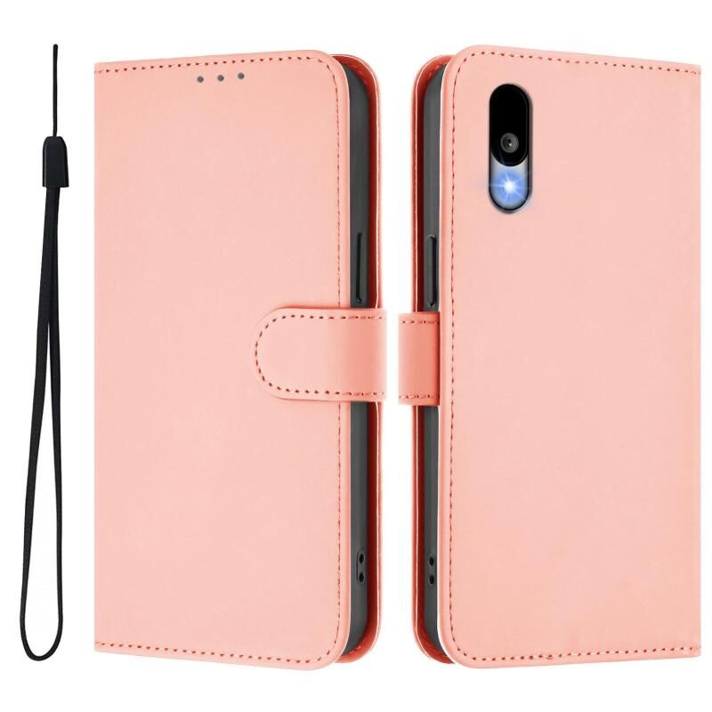 For Sharp Basio Active3 Skin Feel Solid Color Leather Phone Case with Lanyard(Pink)
