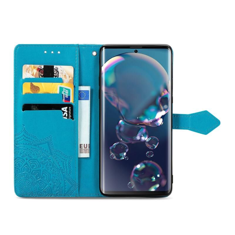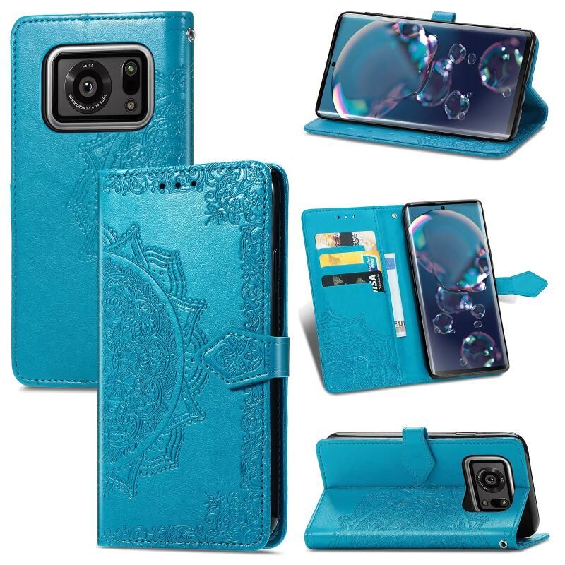 Για Sharp R6 Mandala λουλούδι ανάγλυφο οριζόντια Flip δερμάτινη θήκη με βραχίονα / υποδοχή για κάρτες / πορτοφόλι / κορδόνι (μπλε)