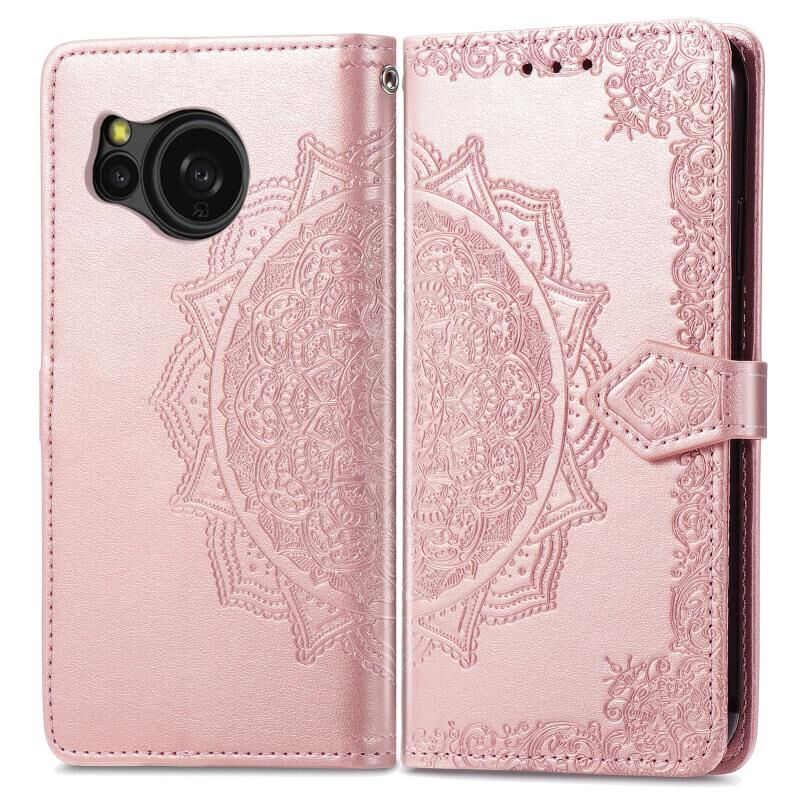 Για Sharp Sense 8 Mandala λουλούδι ανάγλυφο δερμάτινη θήκη τηλεφώνου (Rose Gold)