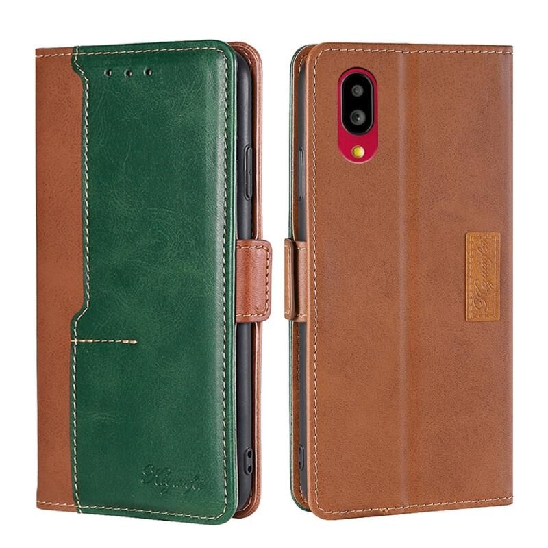 Για Sharp Απλή Sumaho 6 / A201SH αντίθεση χρώμα πλευρά πόρπη δερμάτινη θήκη τηλεφώνου (ανοιχτό καφέ + πράσινο)