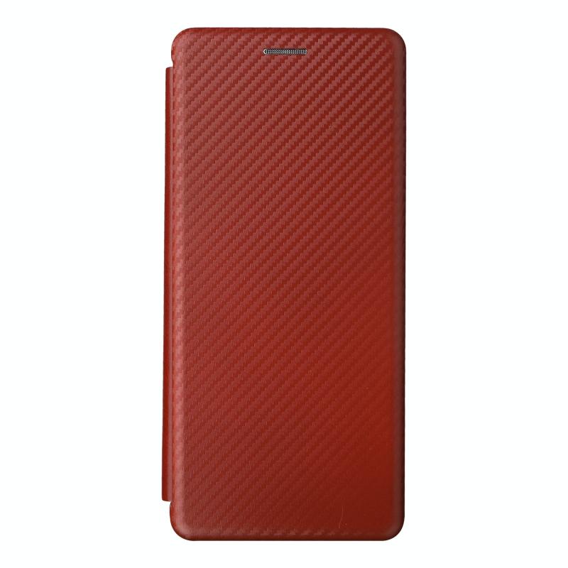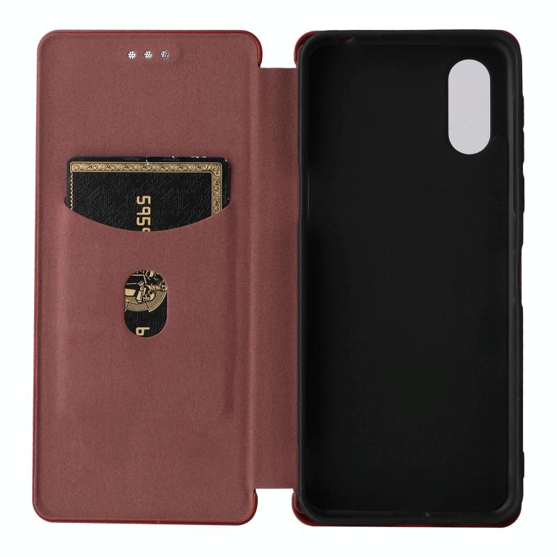 Θήκη τηλεφώνου από δέρμα με υφή ανθρακονήματος για Sharp Simple Sumaho 6 (Καφέ)
