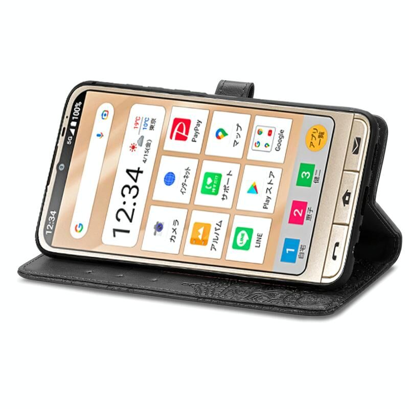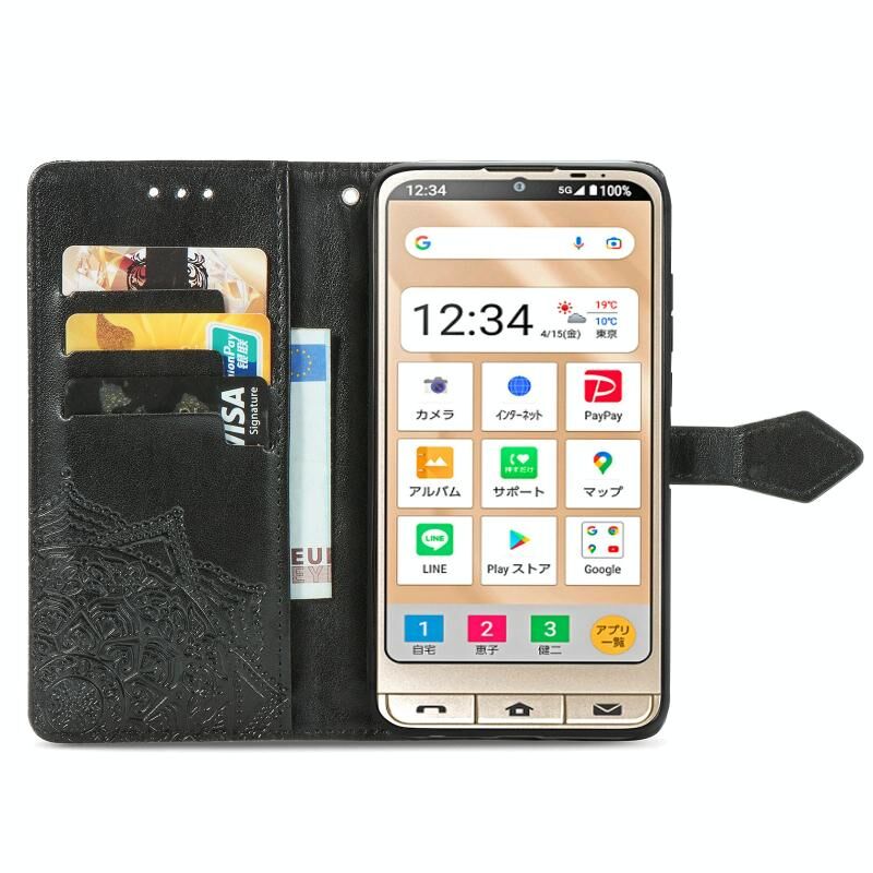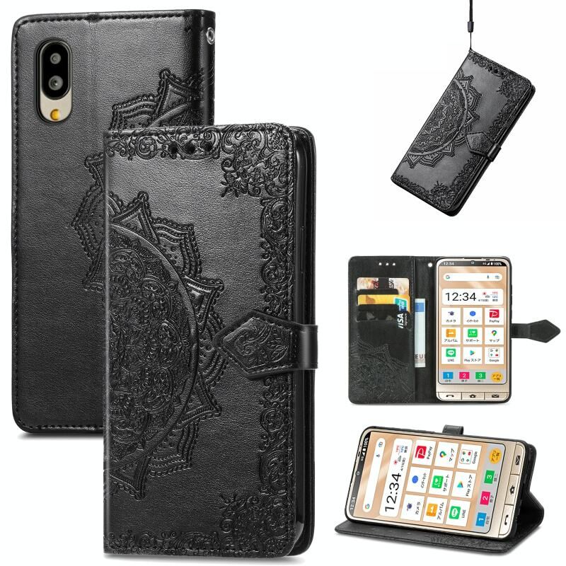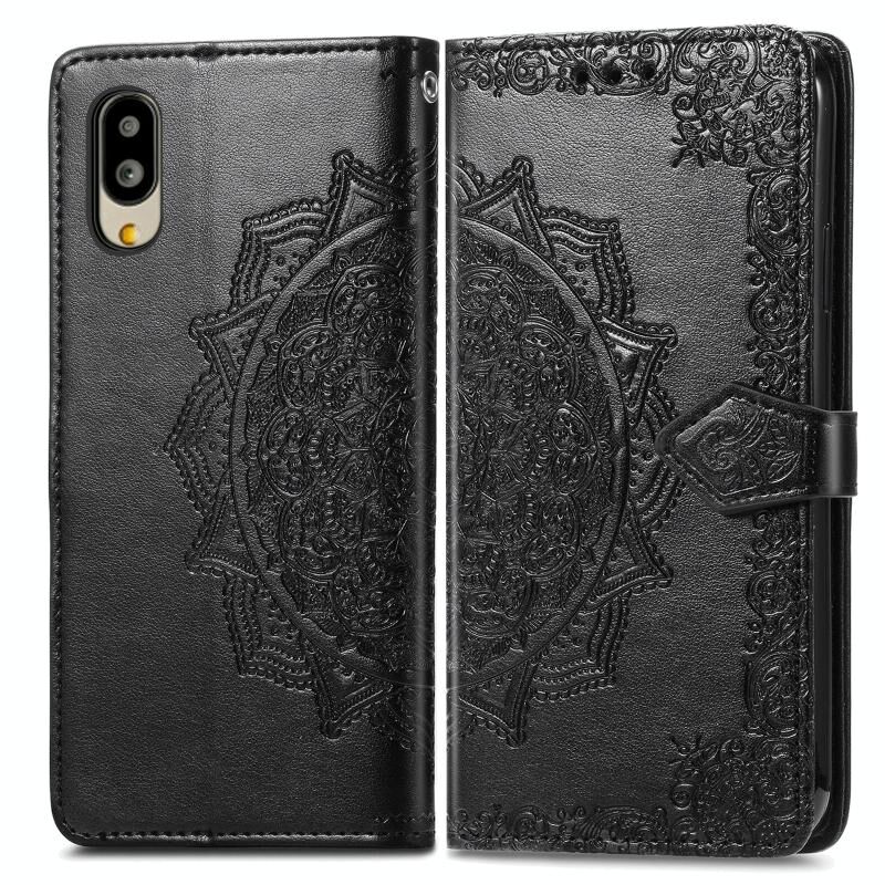 Για Sharp Απλή Sumaho 6 Mandala λουλούδι ανάγλυφο δερμάτινη θήκη τηλεφώνου (Μαύρο)