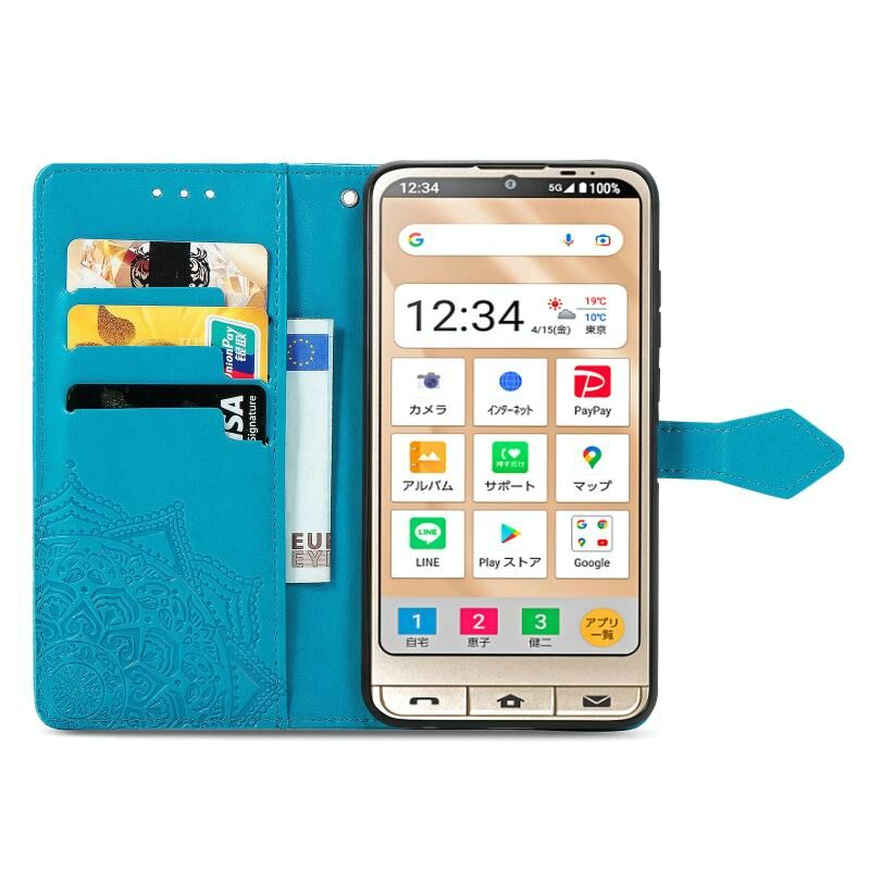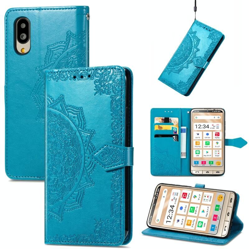 Για Sharp Απλή Sumaho 6 Mandala λουλούδι ανάγλυφο δερμάτινη θήκη τηλεφώνου (μπλε)