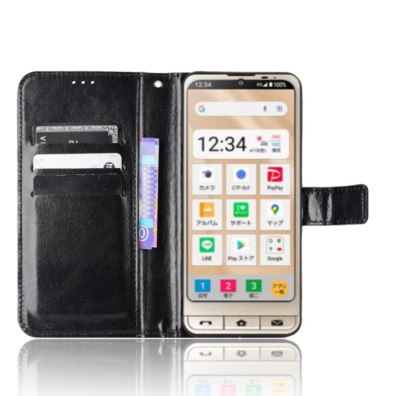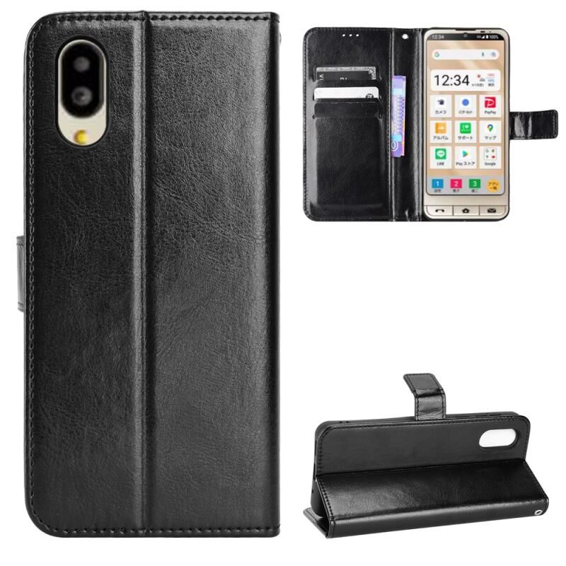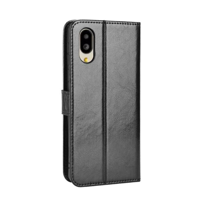 Θήκη τηλεφώνου για Sharp Simple Sumaho 6, δέρμα με υφή Crazy Horse ρετρό (Μαύρο)