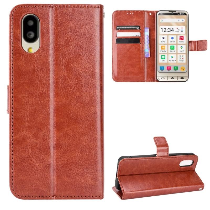 Θήκη τηλεφώνου για Sharp Simple Sumaho 6, δέρμα με υφή Crazy Horse ρετρό (Μαύρο)