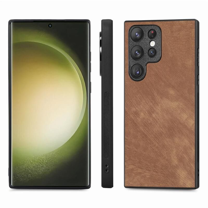 Θήκη κινητού τηλεφώνου PC με δέρμα Retro ENKAY για Samsung Galaxy S23 Ultra 5G με μαλακή μεμβράνη PET (Ροζ) (ENKAY)