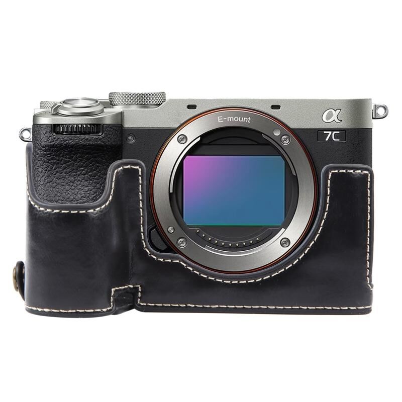 Για Sony ILCE-7CM2 / Alpha 7C II Γυαλιστερό PU δέρμα φωτογραφική μηχανή μισή βάση θήκη (μαύρο)