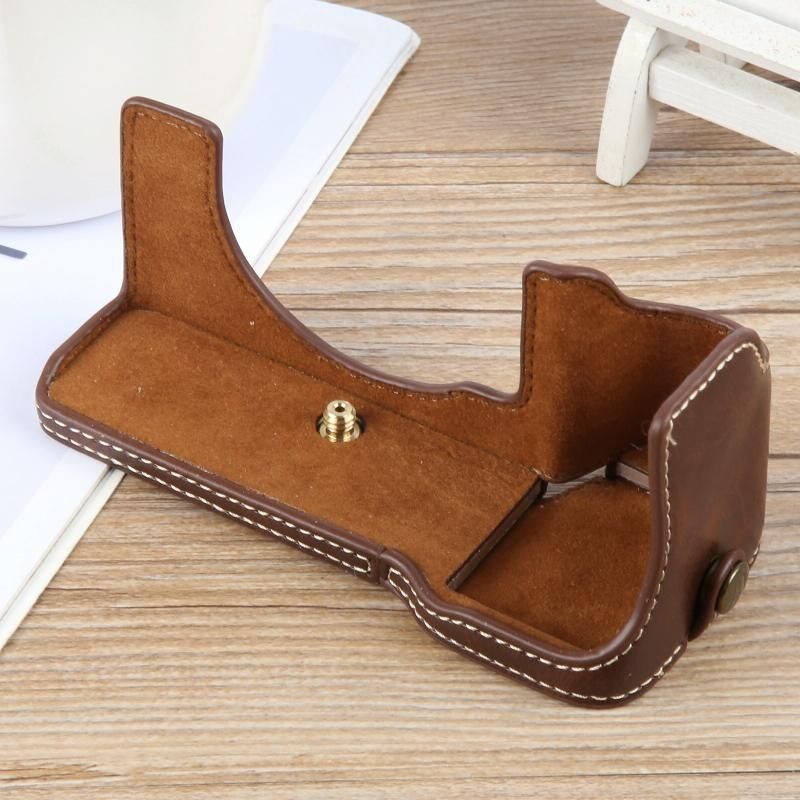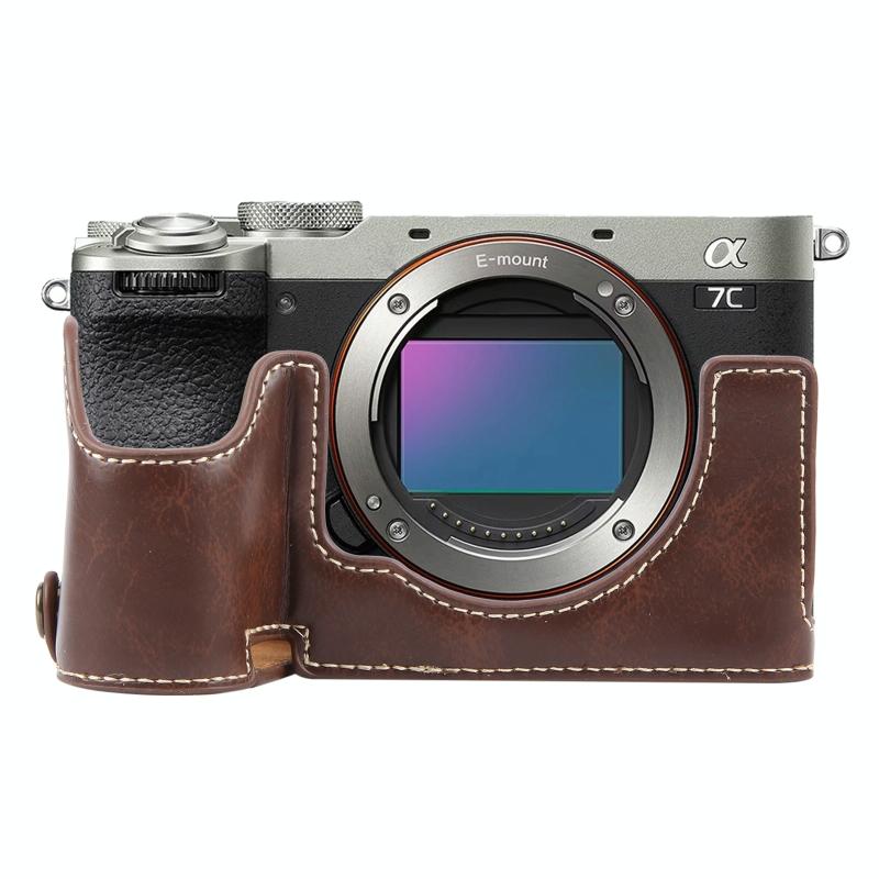 For Sony ILCE-7CM2 / Alpha 7C II Glossy PU Leather Camera Half Case Base(Coffee)