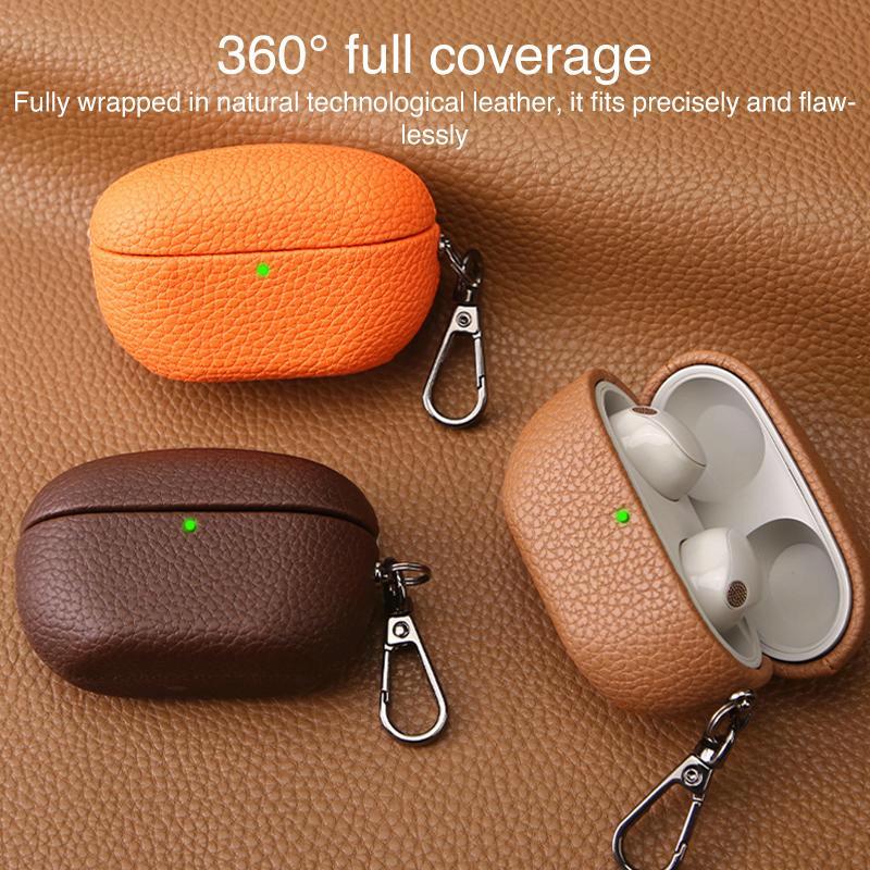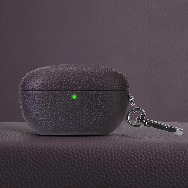 For Sony WF-1000XM5 Litchi Texture PU Earphones Case with Hook(Dark Purple)