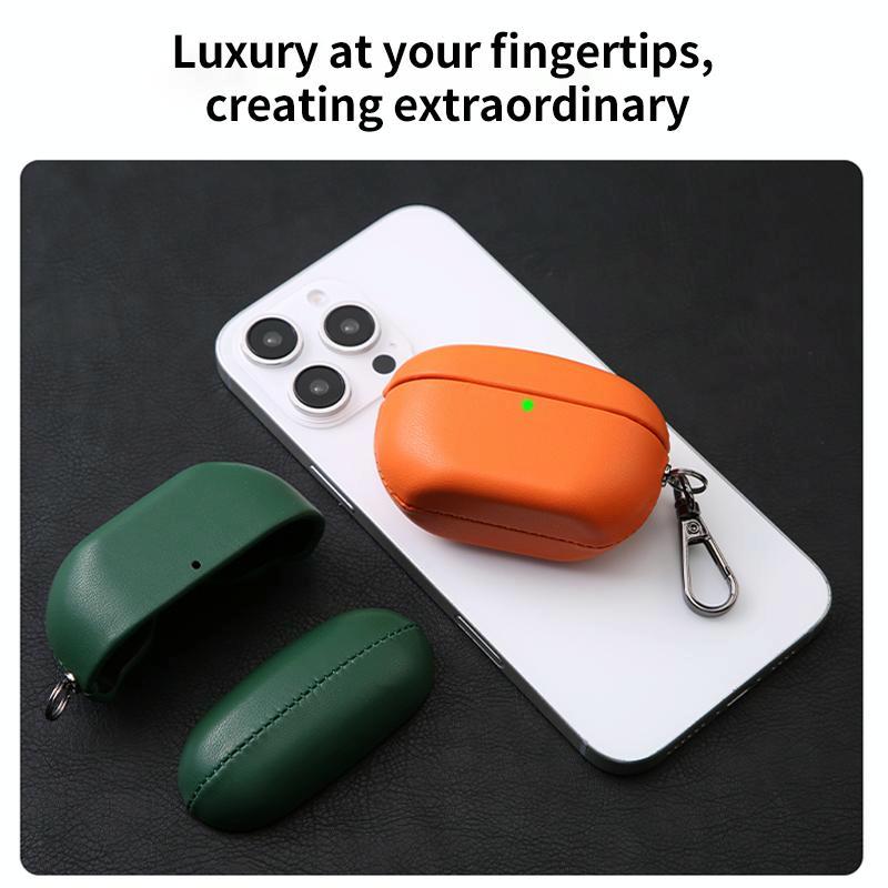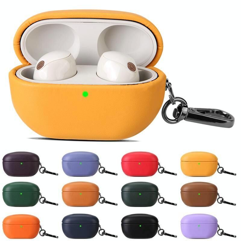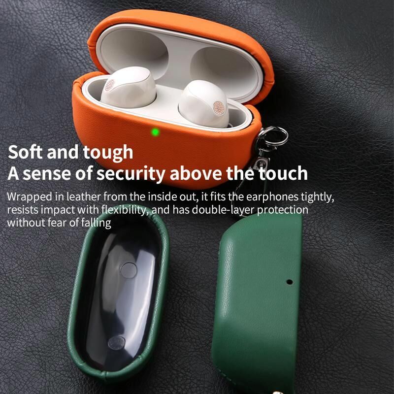 For Sony WF-1000XM5 Oily Leather Split Earphone Case(Dark Green)