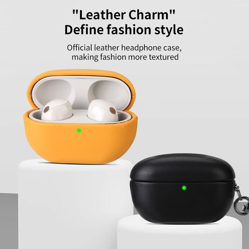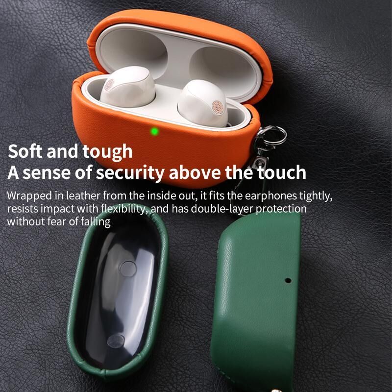 For Sony WF-1000XM5 Oily Leather Split Earphone Case(Orange)
