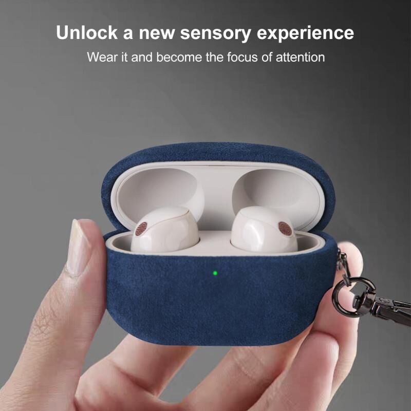 For Sony WF-1000XM5 Turned Fur Leather Earphone Case with Hook(Yellow)