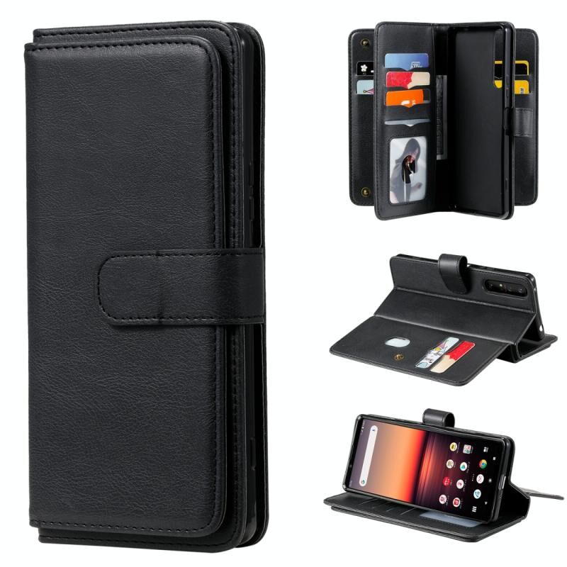 Για Sony Xpeira 1 II Πολυλειτουργική μαγνητική χάλκινη αγκράφα οριζόντια Flip αμιγές χρώμα δερμάτινη θήκη με 10 υποδοχές για κάρτες & πορτοφόλι & θήκη & κορνίζα φωτογραφιών(Μαύρο)