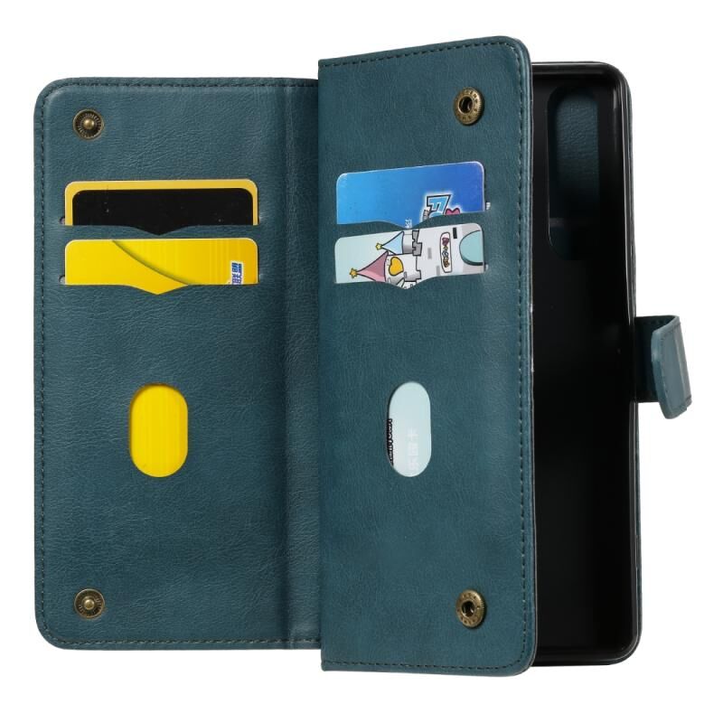 Για Sony Xpeira 1 II Πολυλειτουργική μαγνητική χάλκινη πόρπη Οριζόντια Flip Αμιγές χρώμα δερμάτινη θήκη με 10 υποδοχές για κάρτες & πορτοφόλι & θήκη & κορνίζα φωτογραφιών (σκούρο πράσινο)
