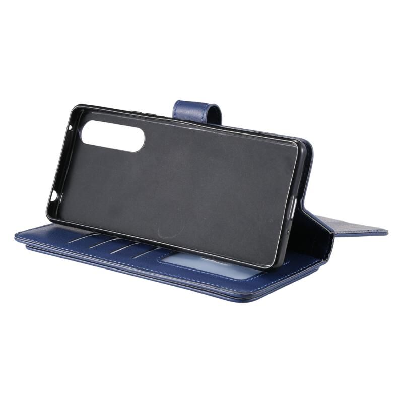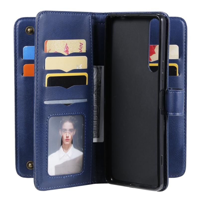 Για Sony Xpeira 1 II Πολυλειτουργική μαγνητική χάλκινη πόρπη οριζόντια Flip αμιγούς χρώματος δερμάτινη θήκη με 10 υποδοχές για κάρτες & πορτοφόλι & θήκη & κορνίζα φωτογραφιών(Navy Blue)