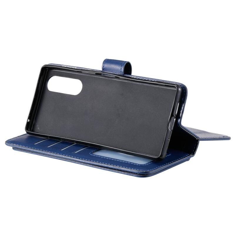 Για Sony Xpeira 5 Πολυλειτουργική μαγνητική χάλκινη πόρπη οριζόντια Flip αμιγούς χρώματος δερμάτινη θήκη με 10 υποδοχές για κάρτες & πορτοφόλι & θήκη & κορνίζα φωτογραφιών(Navy Blue)