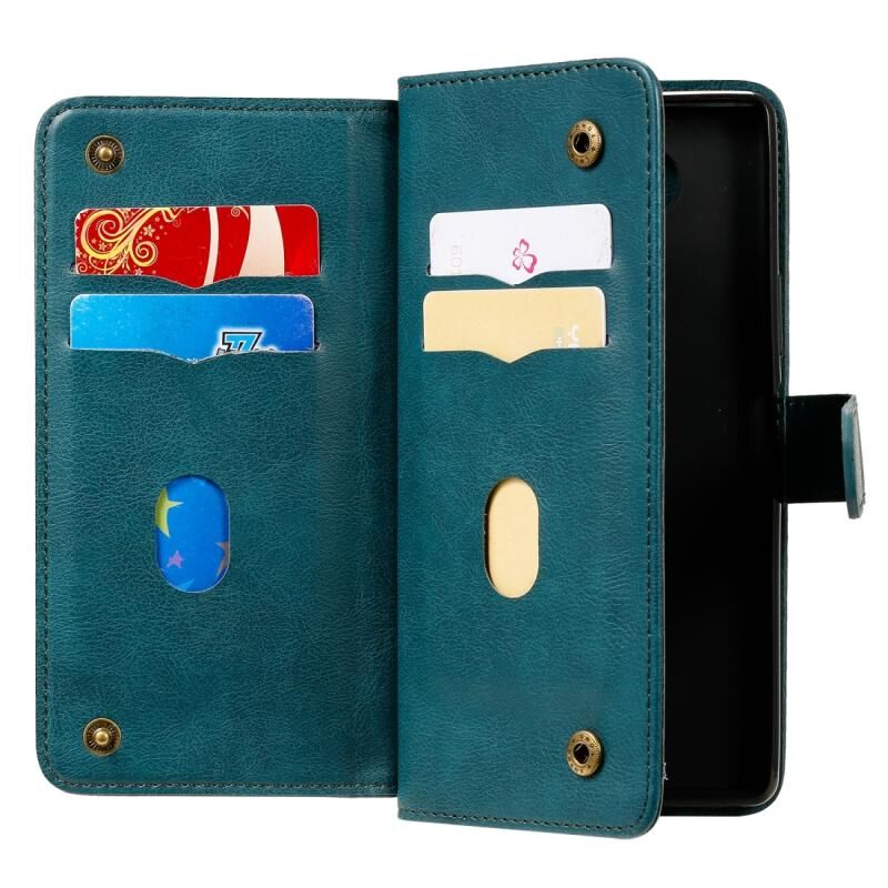 Για Sony Xpeira 8 Πολυλειτουργική μαγνητική χάλκινη πόρπη οριζόντια Flip Solid Color δερμάτινη θήκη με 10 υποδοχές για κάρτες & πορτοφόλι & θήκη & κορνίζα φωτογραφιών (σκούρο πράσινο)