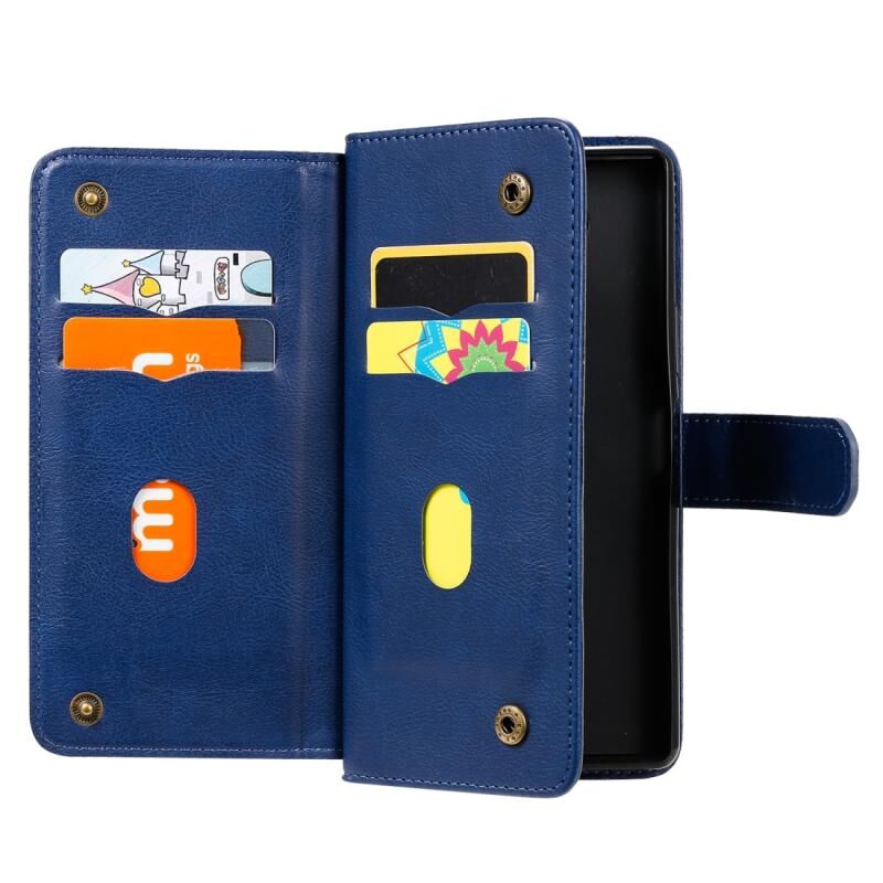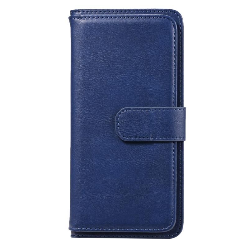 Για Sony Xpeira 8 Πολυλειτουργική μαγνητική χάλκινη πόρπη οριζόντια Flip αμιγούς χρώματος δερμάτινη θήκη με 10 υποδοχές για κάρτες & πορτοφόλι & θήκη & κορνίζα φωτογραφιών(Navy Blue)
