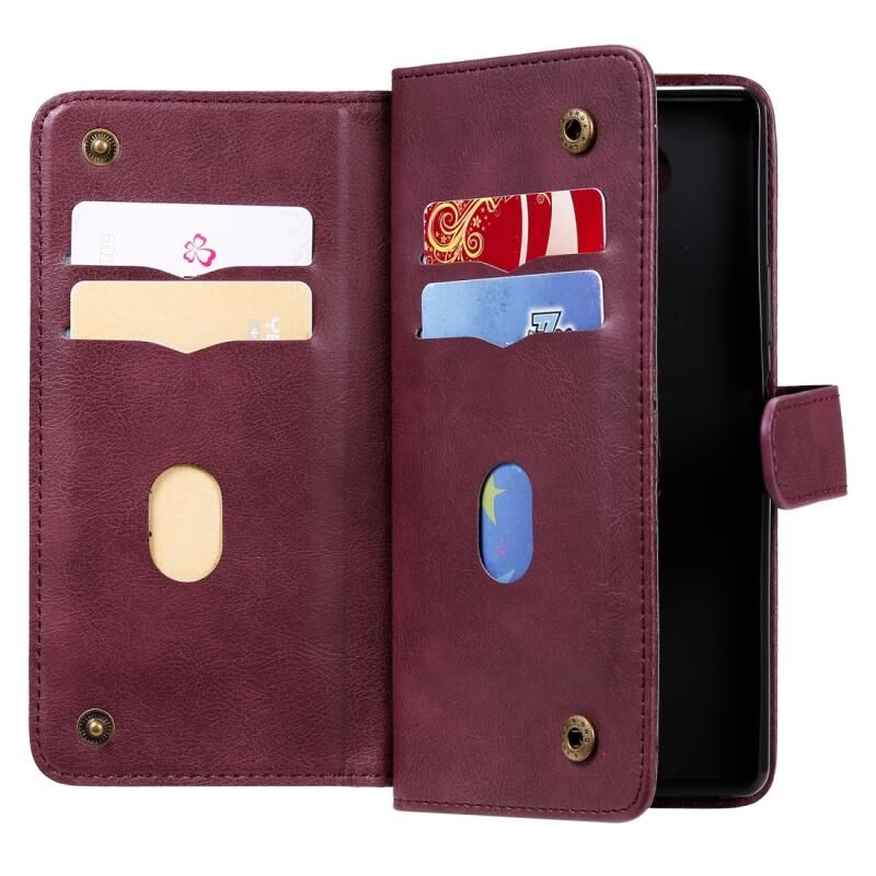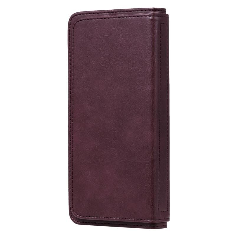 Για Sony Xpeira 8 Πολυλειτουργική μαγνητική χάλκινη πόρπη οριζόντια Flip αμιγούς χρώματος δερμάτινη θήκη με 10 υποδοχές για κάρτες & πορτοφόλι & θήκη & κορνίζα φωτογραφιών (κόκκινο κρασί)