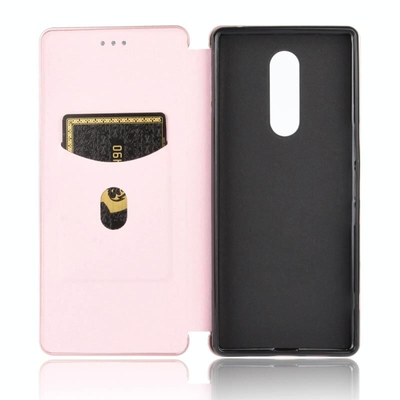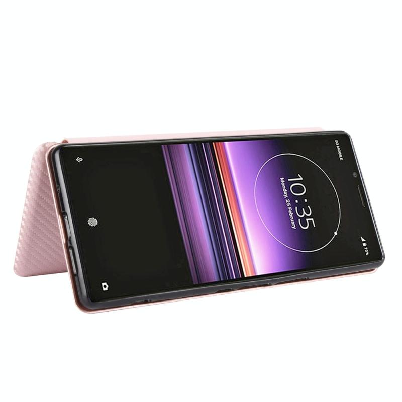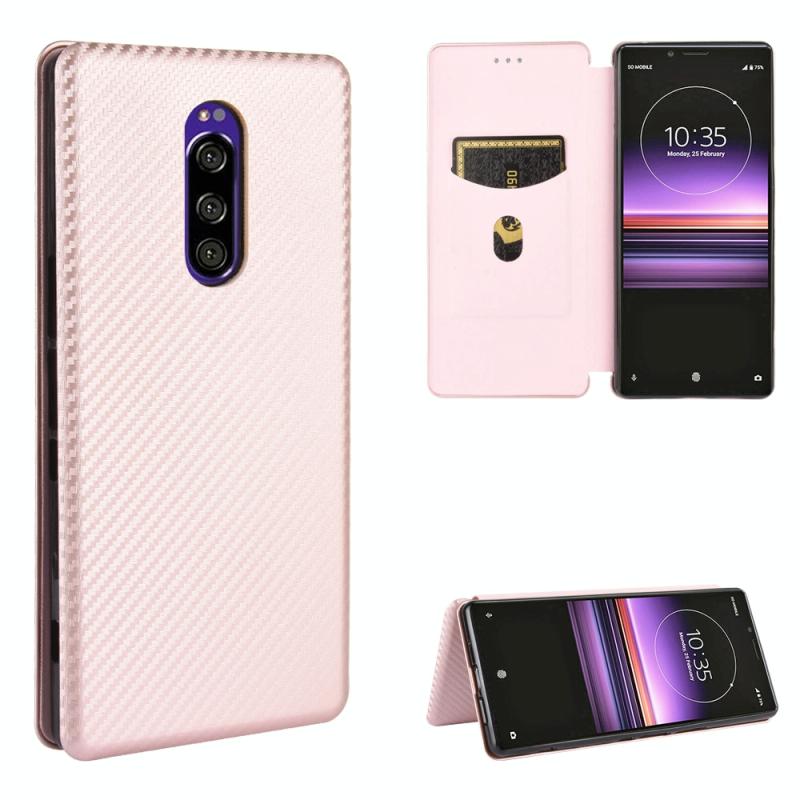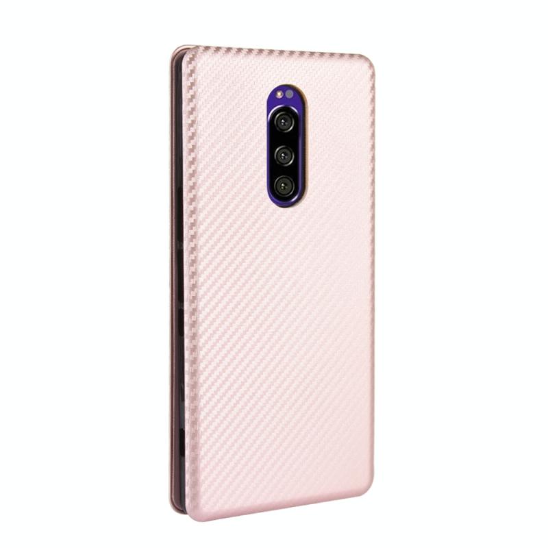 For Sony Xperia 1 Carbon Fiber Texture Horizontal Flip TPU + PC + PU Leather Case with Card Slot(Pink)