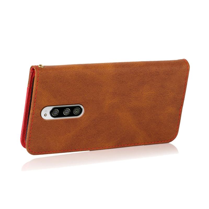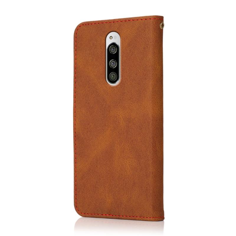 Θήκη τηλεφώνου δερμάτινη με διπλή ραφή για Sony Xperia 1 (Καφέ Κόκκινο)